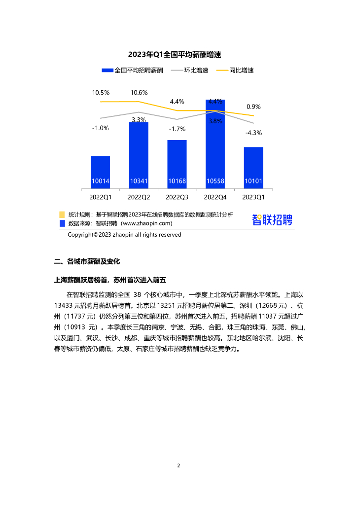 智联招聘:2023年第一季度中国企业招聘薪酬报告.pdf