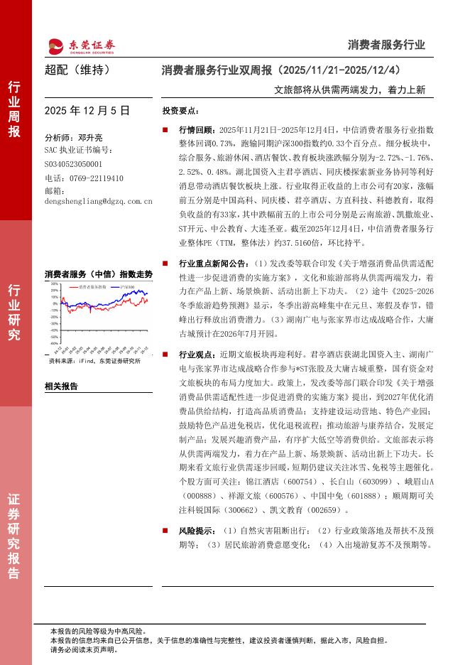 东莞证券:消费者服务行业双周报:文旅部将从供需两端发力,着力上新.pdf