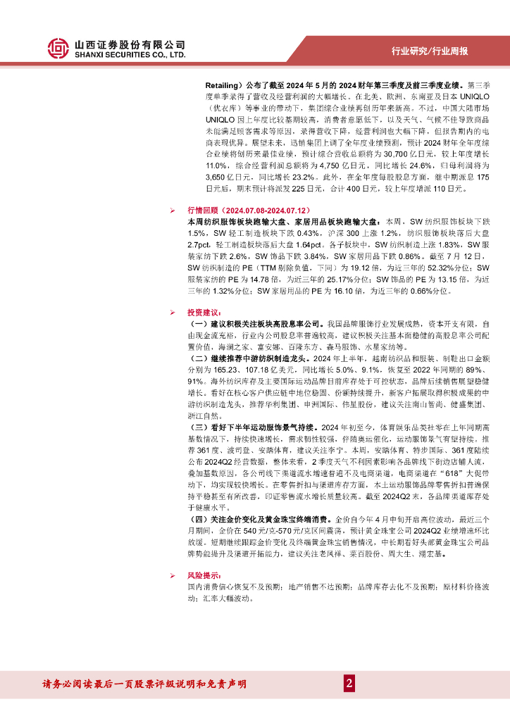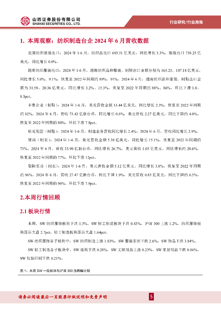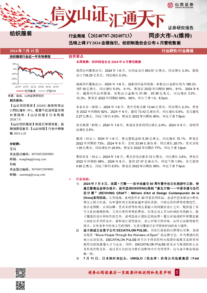 山西证券:纺织服装行业周报:迅销上调FY2024业绩指引,纺织制造台企公布6月营收数据.pdf