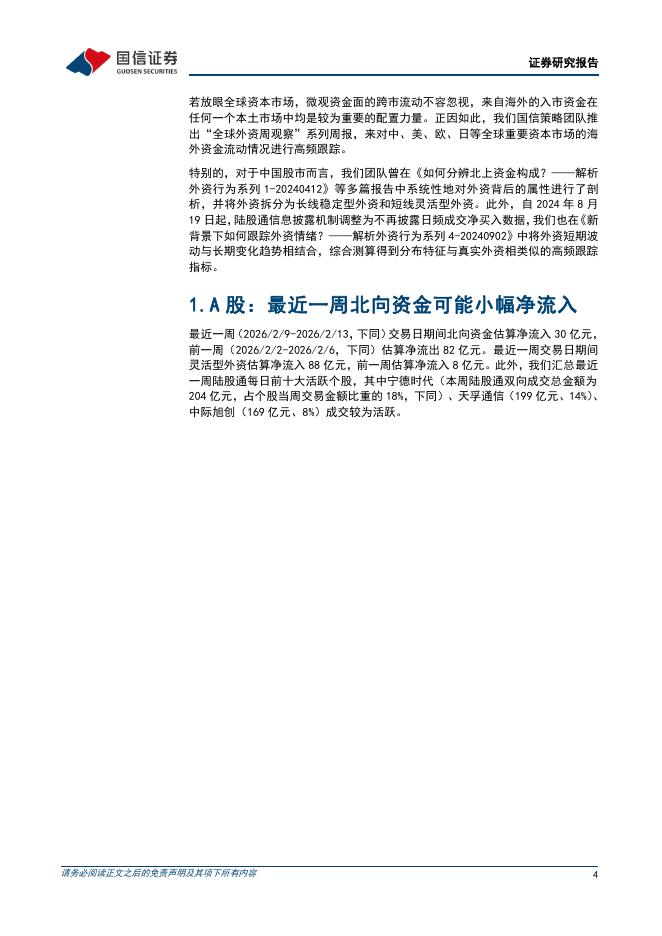 国信证券:2月第2周全球外资周观察:节前南向资金加速流入港股-260214.pdf