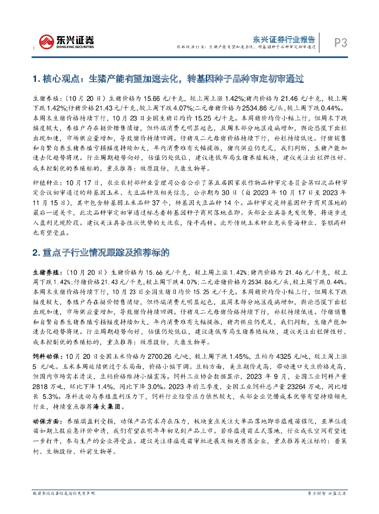 东兴证券:农林牧渔行业周观点(2023年第42周):生猪产能有望加速去化,转基因种子品种审定初审通过.pdf