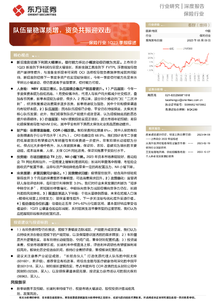 东方证券:保险行业1Q23季报综述:队伍量稳谋质增,资负共振迎双击.pdf