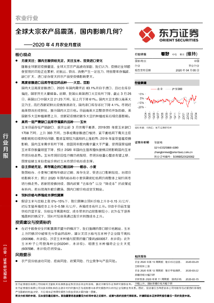 东方证券:2020年4月农业月度谈:全球大宗农产品震荡,国内影响几何?.pdf