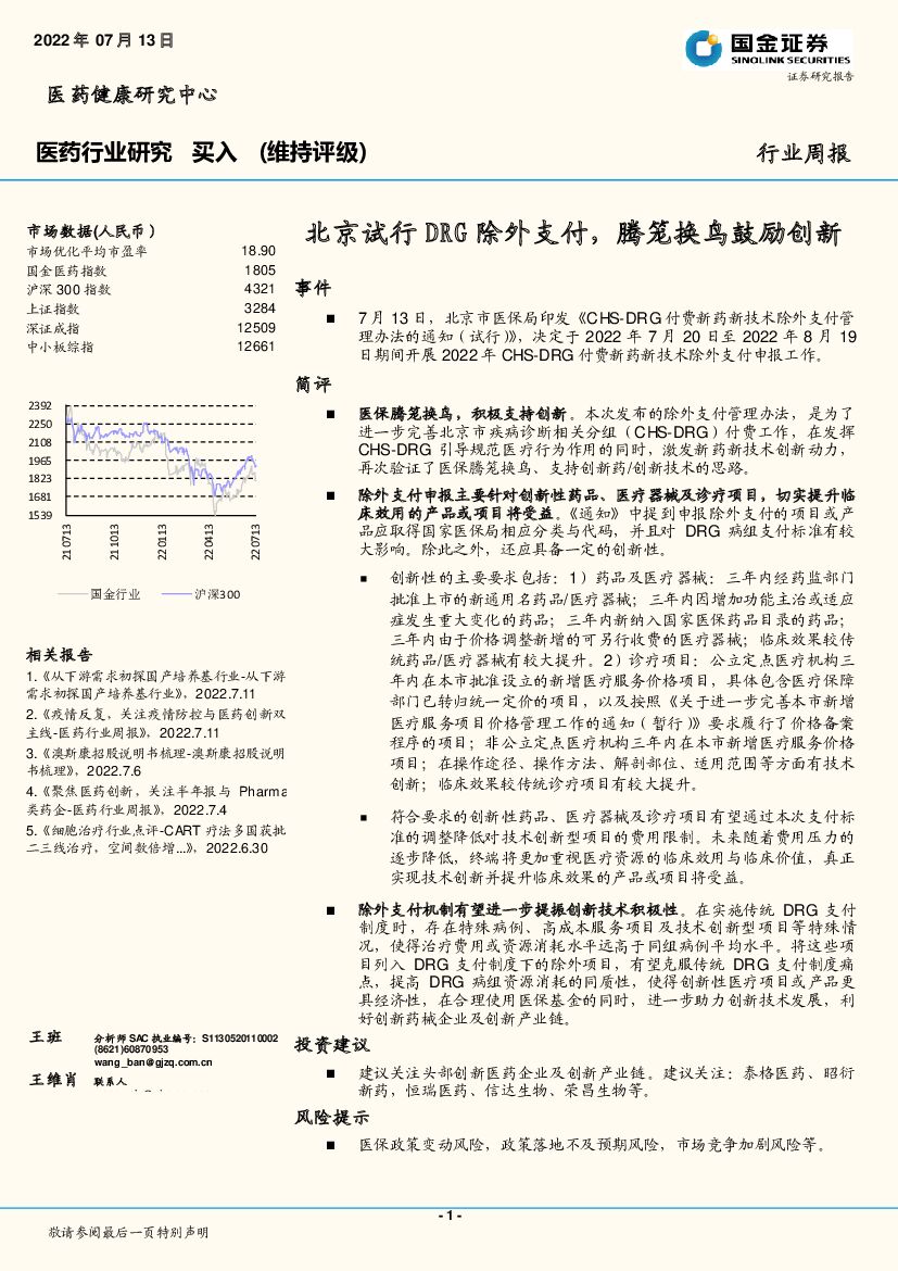 国金证券:医药行业研究:北京试行DRG除外支付,腾笼换鸟鼓励创新.pdf