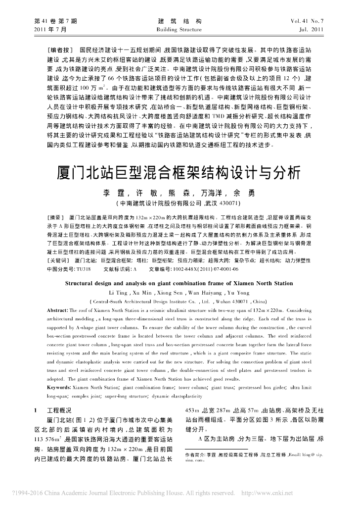厦门北站巨型混合框架结构设计与分析.pdf