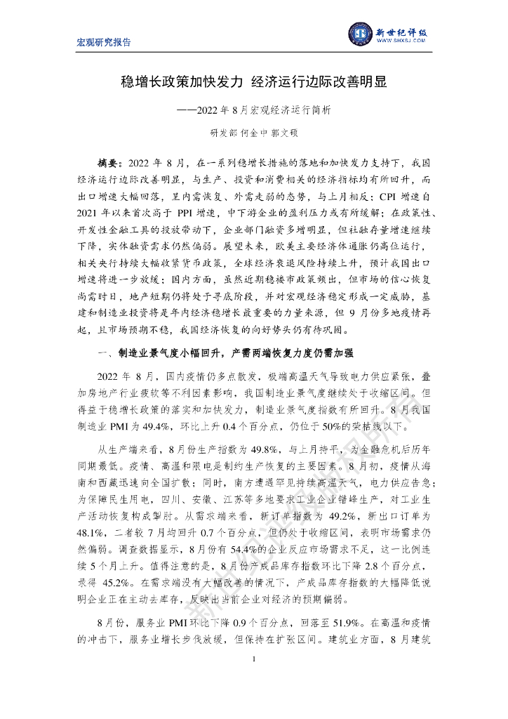 新世纪评级:稳增长政策加快发力 经济运行边际改善明显——2022年8月宏观经济运行简析.pdf
