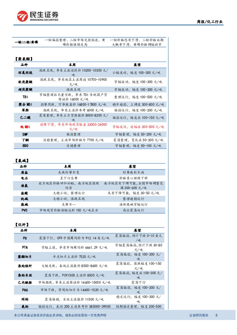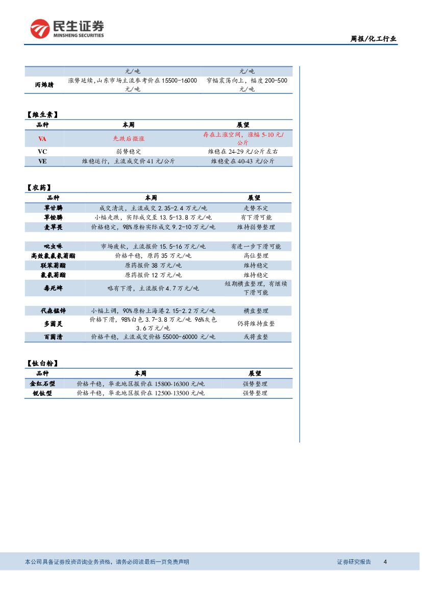 民生证券:基础化工周报:甲烷氯化物价格持续上涨,农化染料保持高景气.pdf