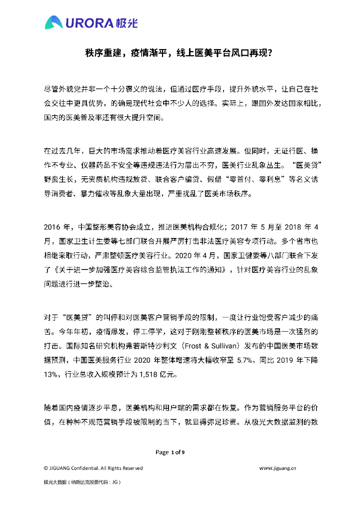 极光大数据:秩序重建,疫情渐平,线上医美平台风口再现?.pdf