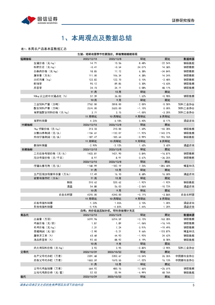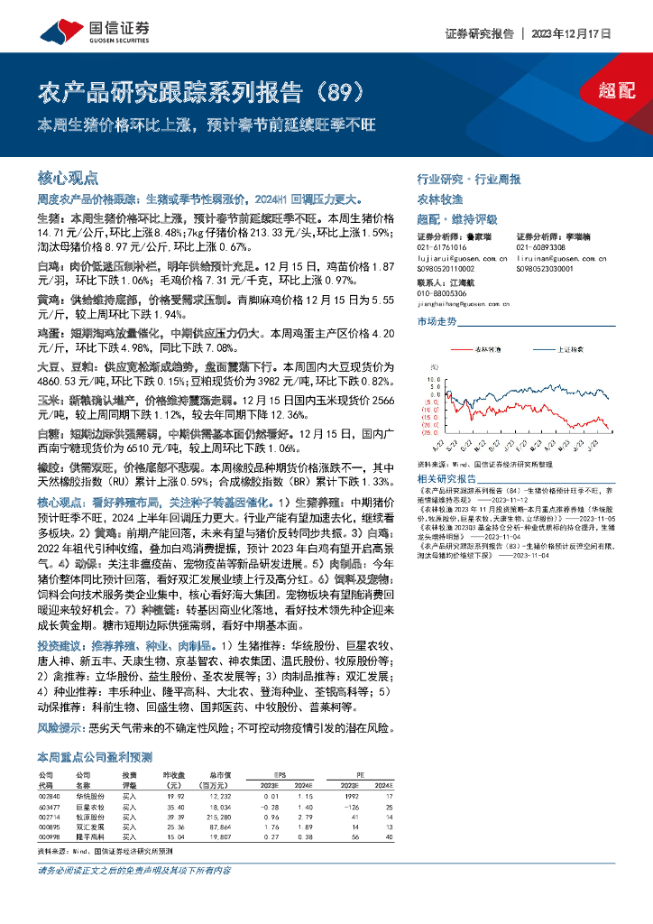 国信证券:农产品研究跟踪系列报告(89):本周生猪价格环比上涨,预计春节前延续旺季不旺.pdf