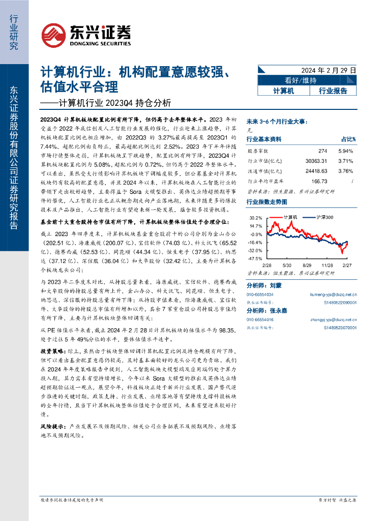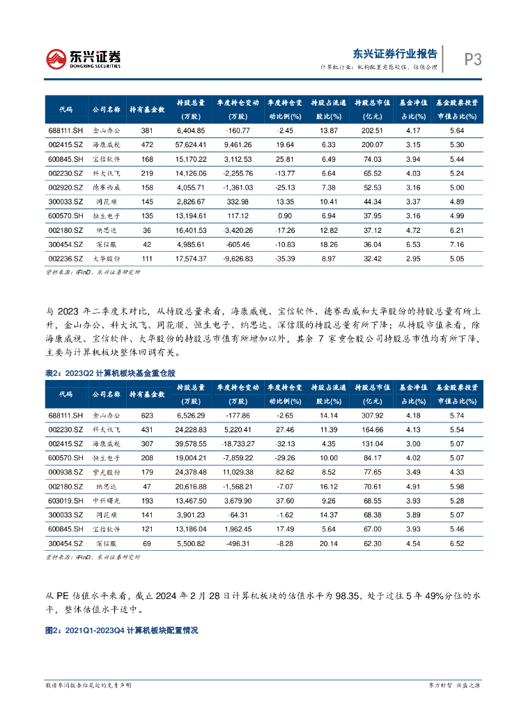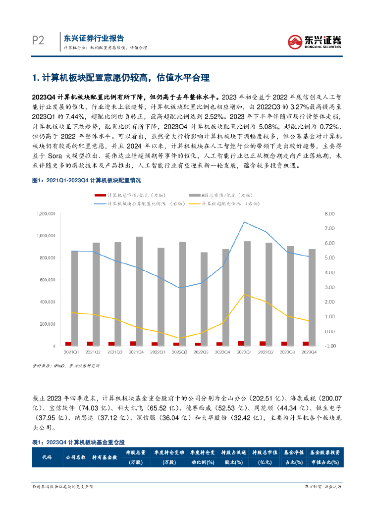 东兴证券:计算机行业2023Q4持仓分析:机构配置意愿较强、估值水平合理.pdf