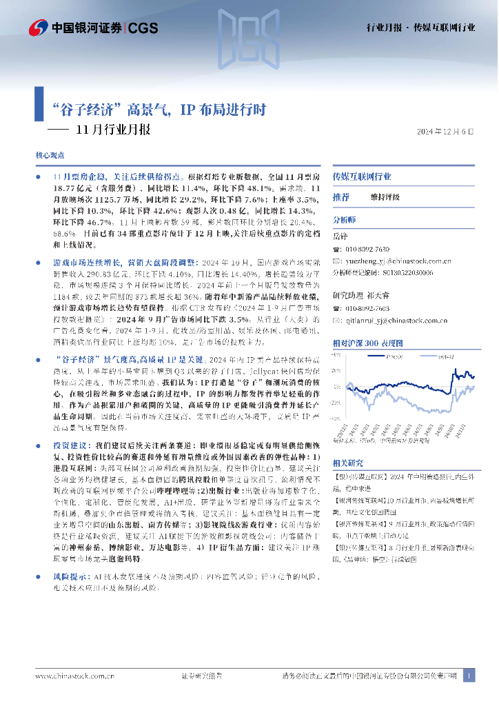 中国银河:传媒互联网11月行业月报:“谷子经济”高景气,IP布局进行时.pdf
