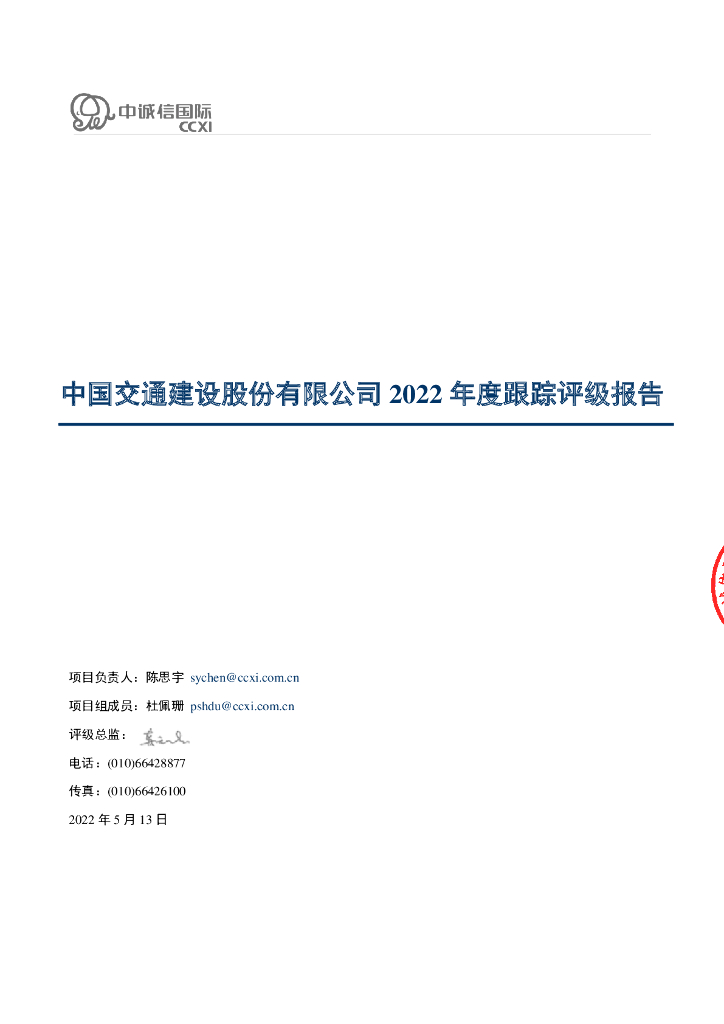 中诚信:中国交通建设股份有限公司2022年度跟踪评级报告.pdf