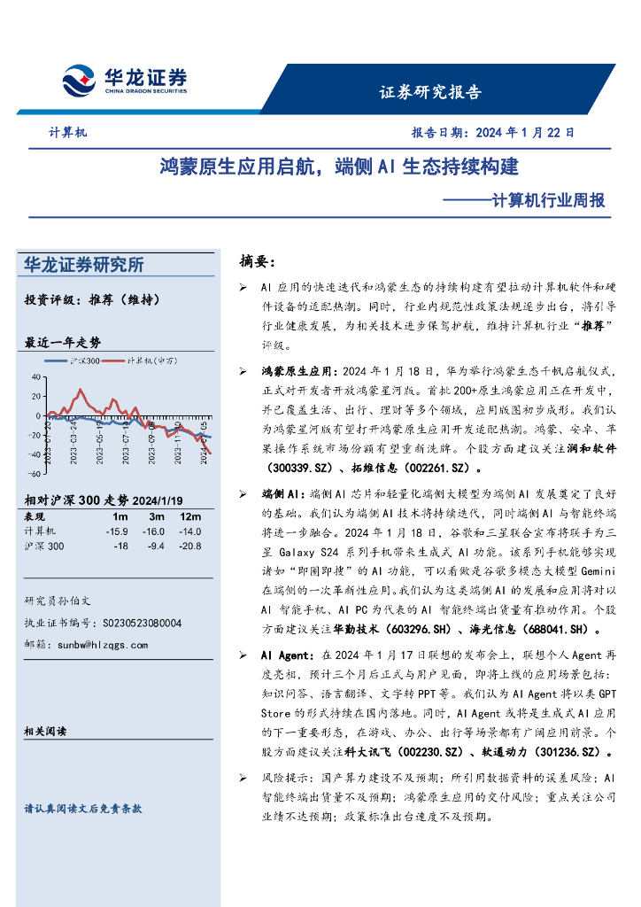 华龙证券:计算机行业周报:鸿蒙原生应用启航,端侧AI生态持续构建.pdf