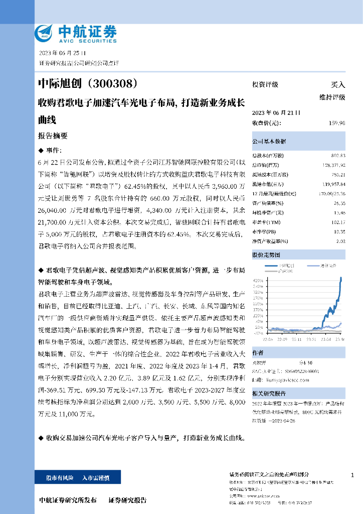 中航证券:中际旭创(300308)-收购君歌电子加速汽车光电子布局,打造新业务成长曲线.pdf