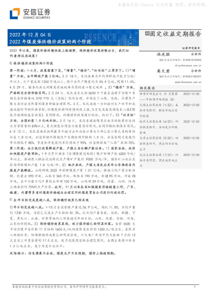 安信证券:2022年煤炭保供稳价政策的两个阶段.pdf