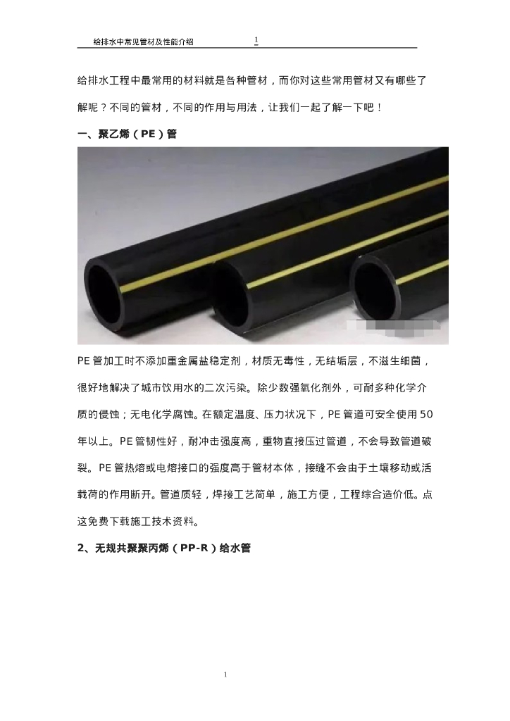给排水中常见管材及性能介绍.doc