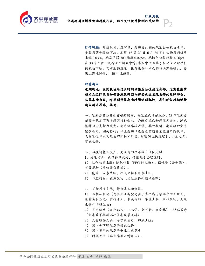 太平洋证券:医药生物行业周报:板块强势反弹,关注血制品板块与流感疫苗投资机会.pdf