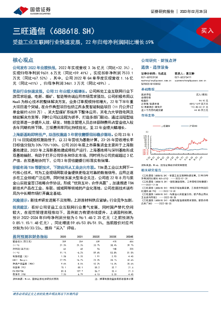 国信证券:三旺通信(688618)-受益工业互联网行业快速发展,22年归母净利润同比增长59%.pdf