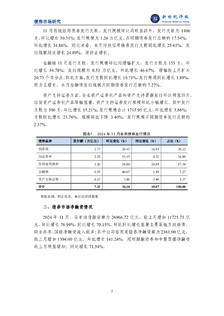 新世纪评级:债市发行规模环比明显回升 净融资增长显著 ——2024年11月债券市场发行概况与政策汇总.pdf