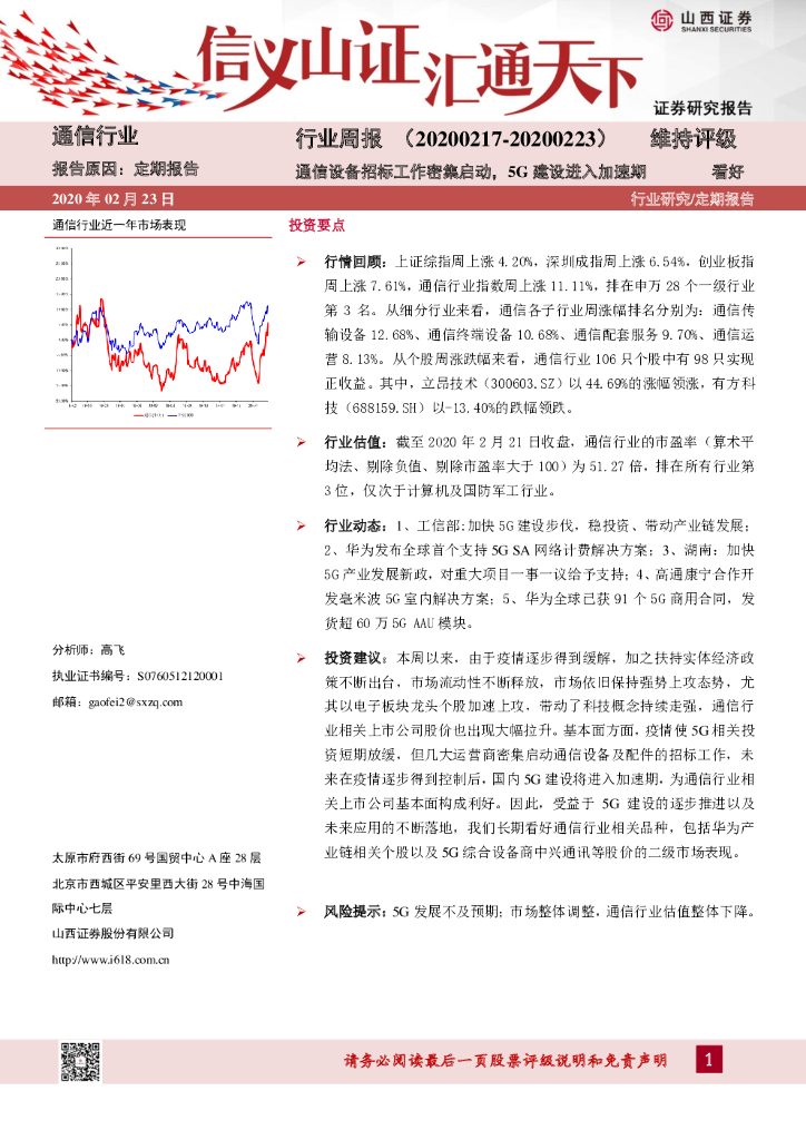 山西证券:通信行业周报:通信设备招标工作密集启动,5G建设进入加速期.pdf