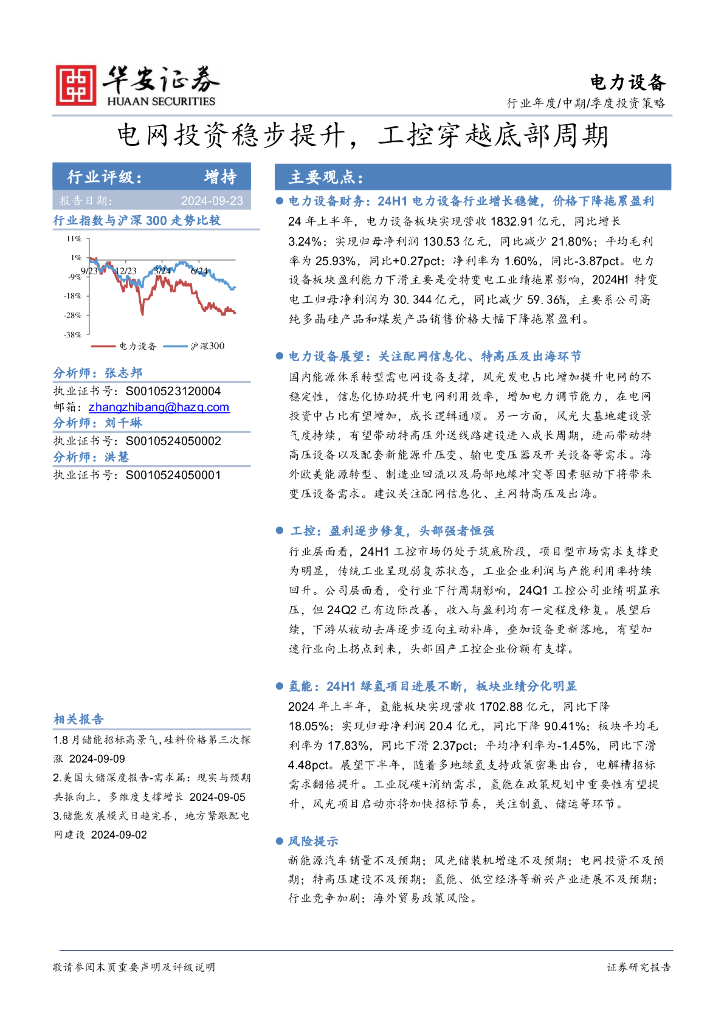 华安证券:电力设备:电网投资稳步提升,工控穿越底部周期.pdf