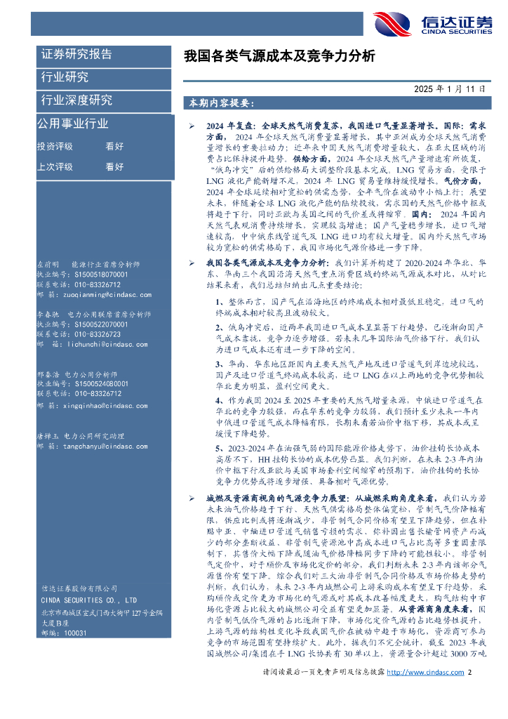信达证券:公用事业行业深度研究:我国各类气源成本及竞争力分析.pdf