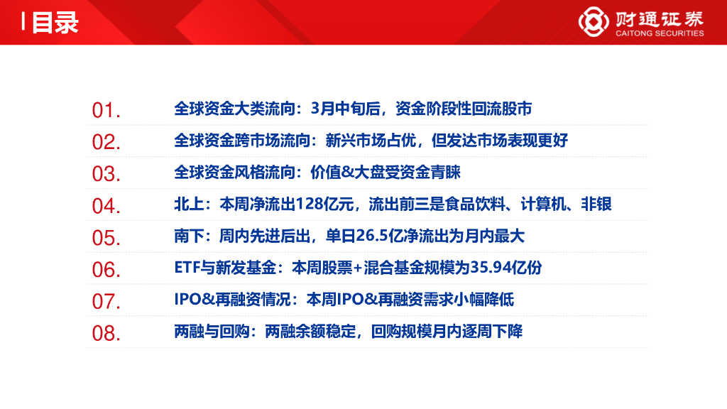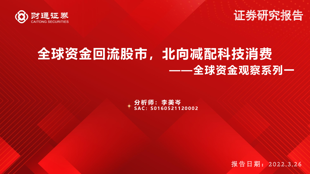 财通证券:全球资金观察系列一:全球资金回流股市,北向减配科技消费.pdf