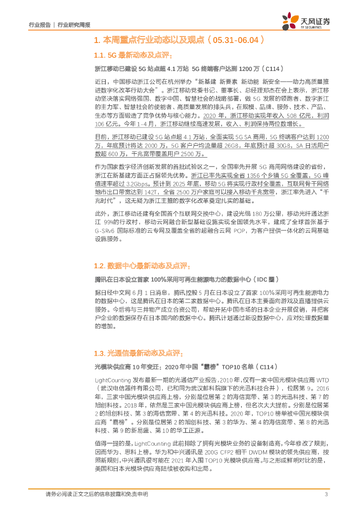 天风证券:通信行业研究周报:中国物联网市场领衔全球增长,国内光模块企业全球地位持续提升.pdf