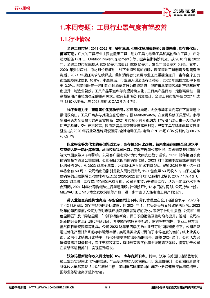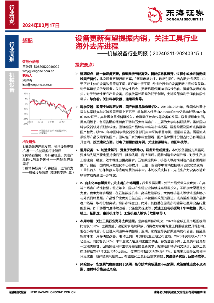 东海证券:机械设备行业周报:设备更新有望提振内销,关注工具行业海外去库进程.pdf