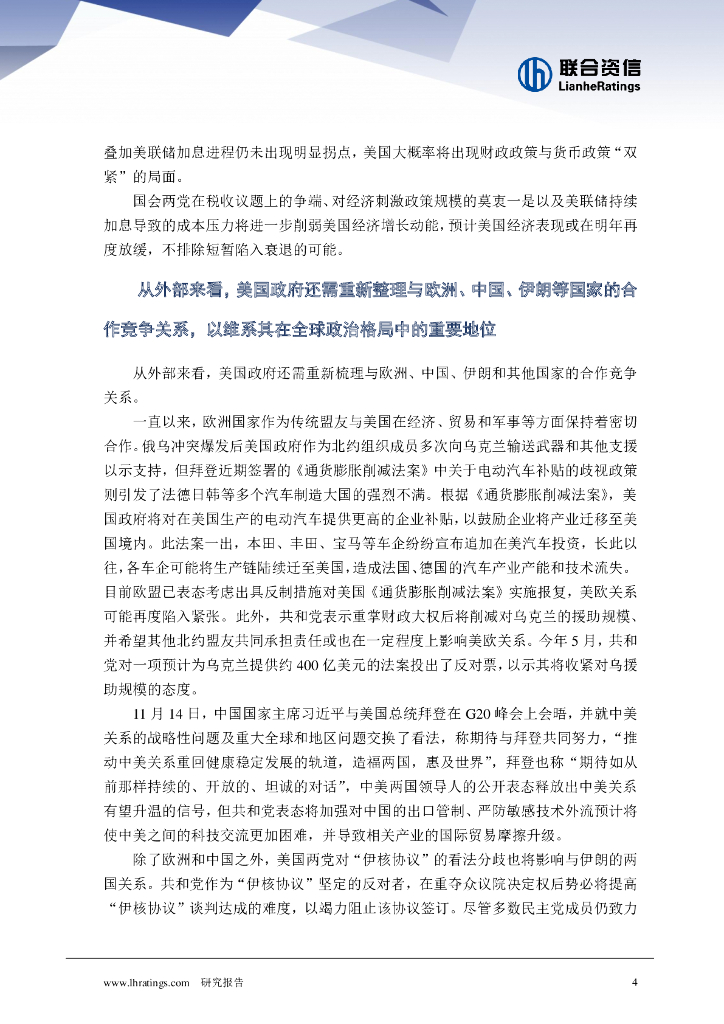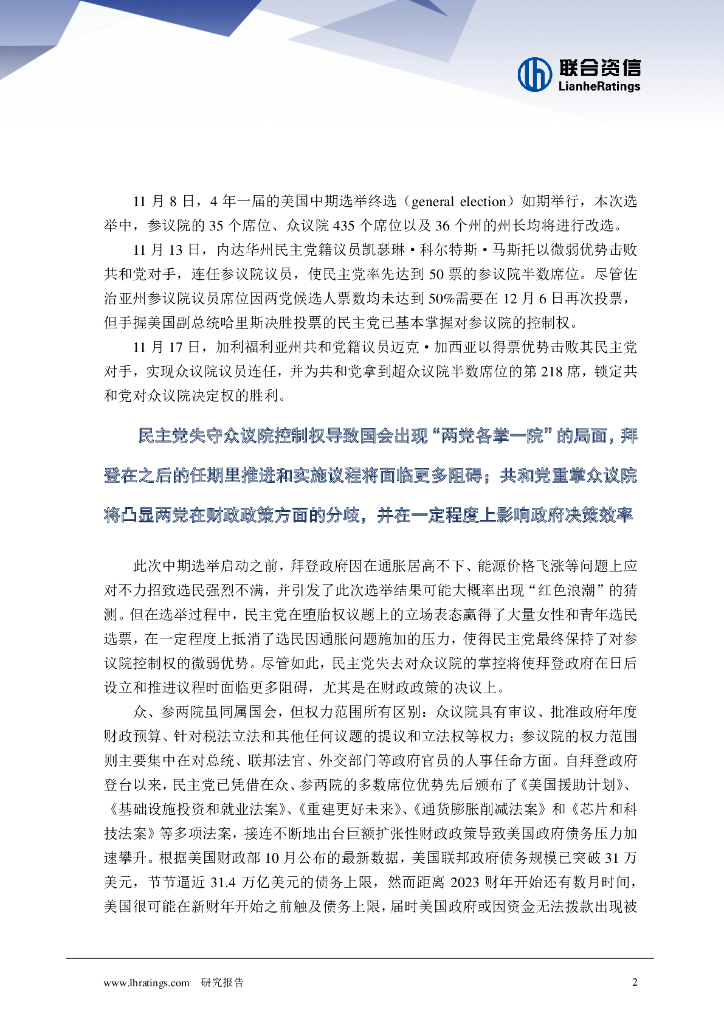 联合资信:中期选举大局已定,美国政府内政外交再迎挑战.pdf