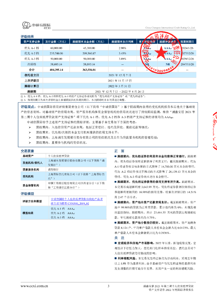 中诚信:浦鑫安居2021年第二期个人住房抵押贷款资产支持证券2022年度跟踪评级报告.pdf