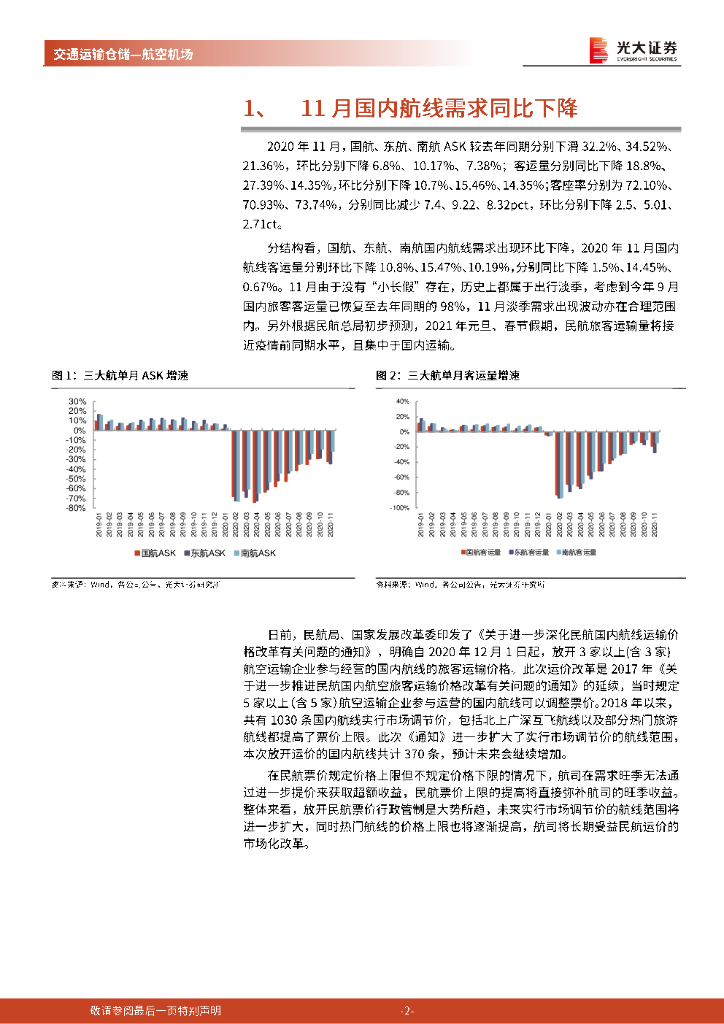 光大证券:航空运输业2020年11月经营数据点评:国内航空需求步入振荡期,航司长期受益运价市场化改革.pdf