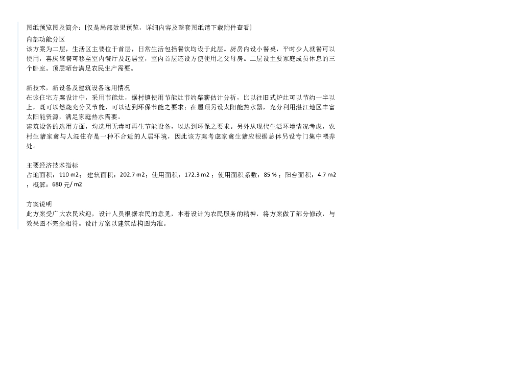 新农村二层住宅全套施工图效果图及方案说明.doc
