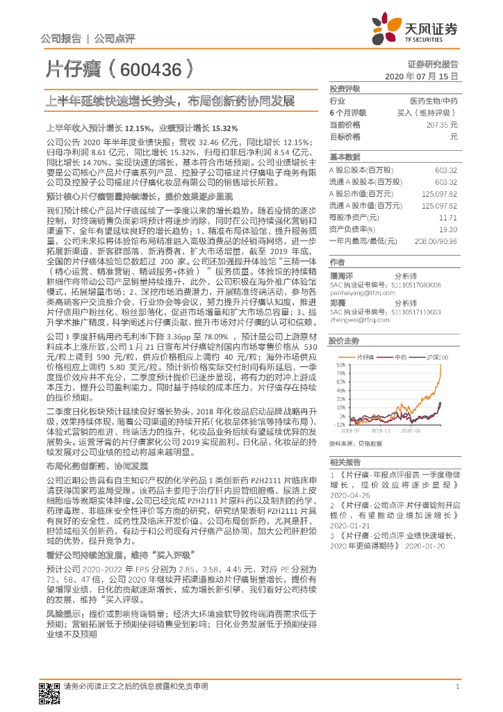 天风证券:片仔癀(600436)-上半年延续快速增长势头,布局创新药协同发展.pdf