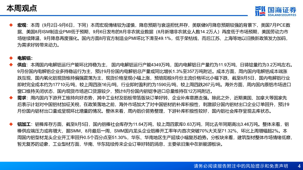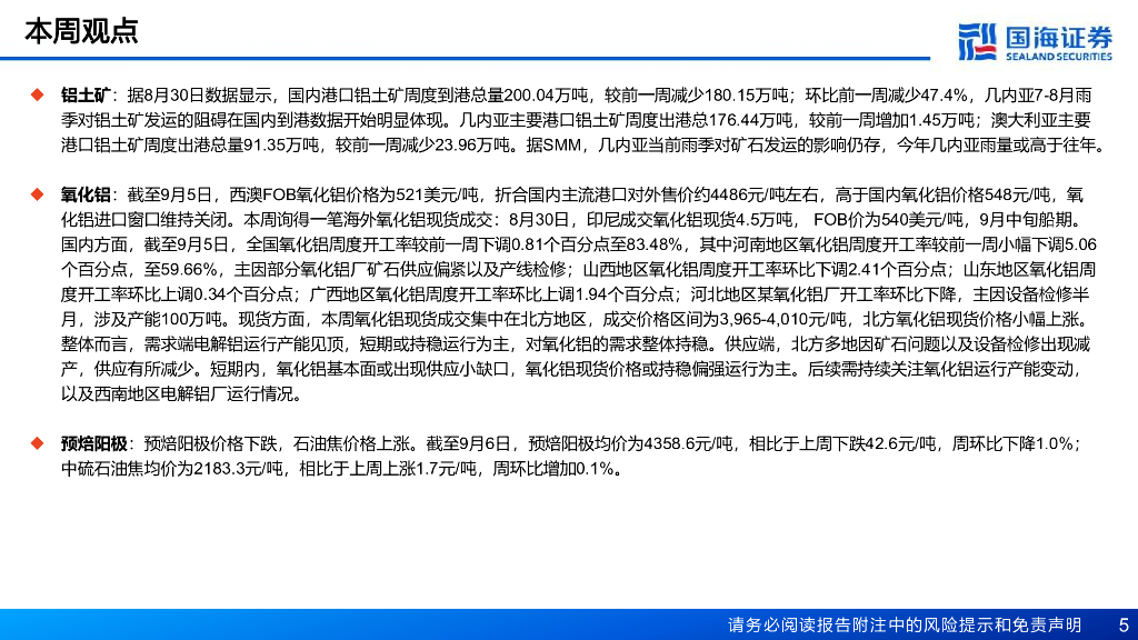 国海证券:铝行业周报:铝锭去库提速,氧化铝偏强上涨,关注需求旺季及降息.pdf
