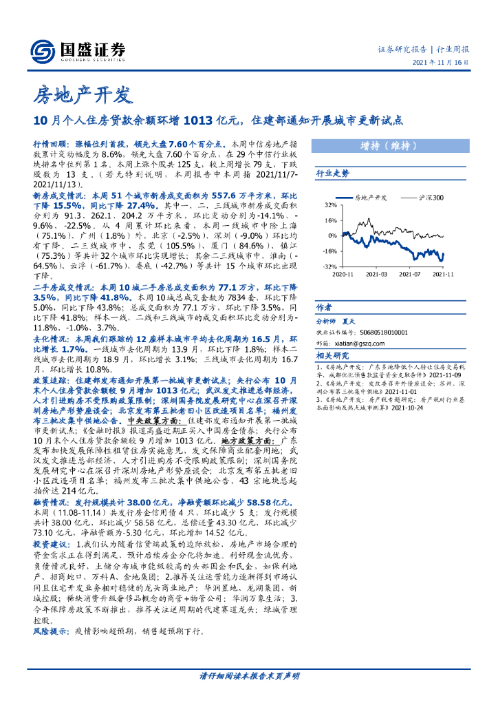 国盛证券:房地产开发:10月个人住房贷款余额环增1013亿元,住建部通知开展城市更新试点.pdf