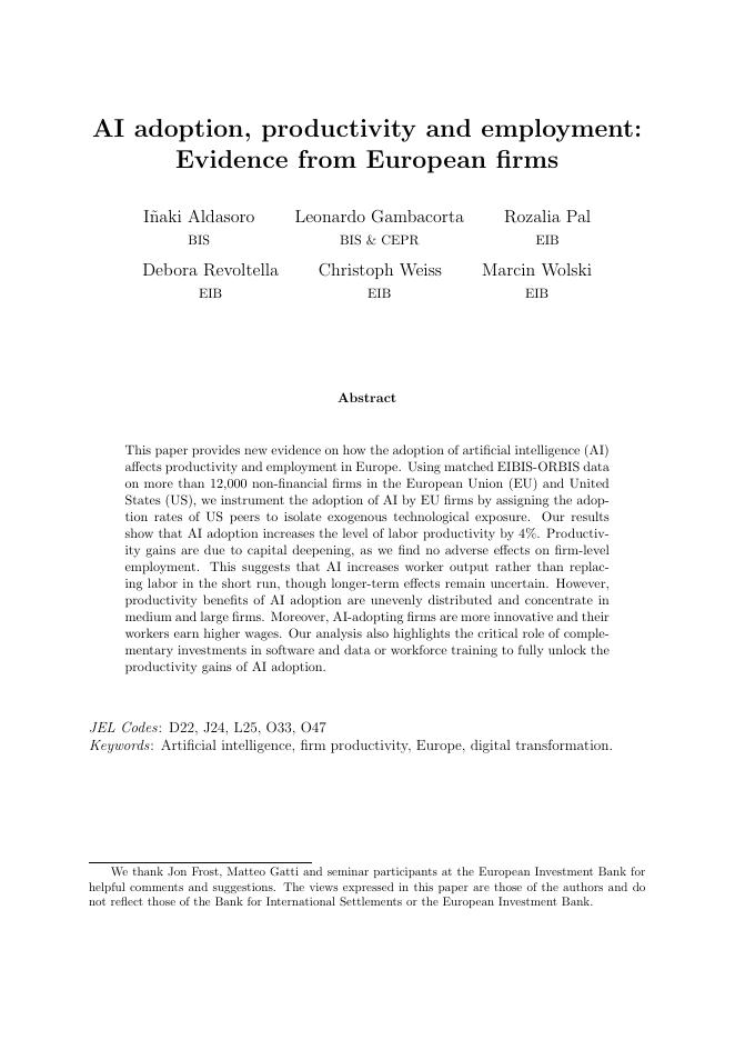 国际清算银行:人工智能的采用、生产力和就业:来自欧洲公司的证据(英文版).pdf