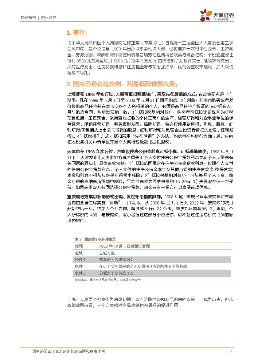 天风证券:房地产:个税改革新增住房贷款利息及租金等专项附加扣除点评-房贷利息抵税或出台、利好改善型住房需求.pdf