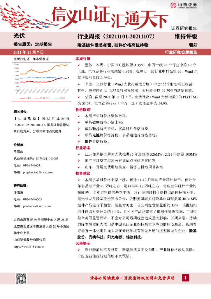 山西证券:光伏行业周报:隆基组件受美扣留,硅料价格高位持稳.pdf