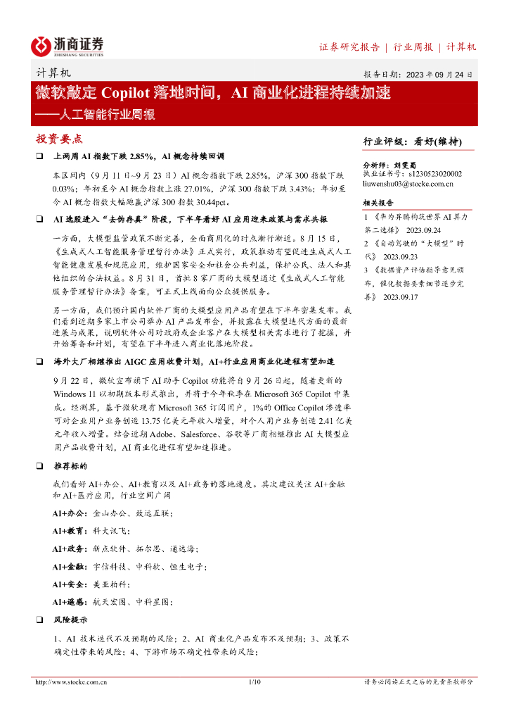 浙商证券:人工智能行业周报:微软敲定Copilot落地时间,AI商业化进程持续加速.pdf