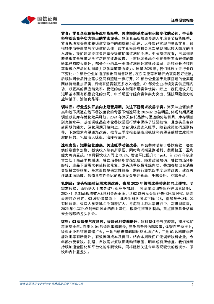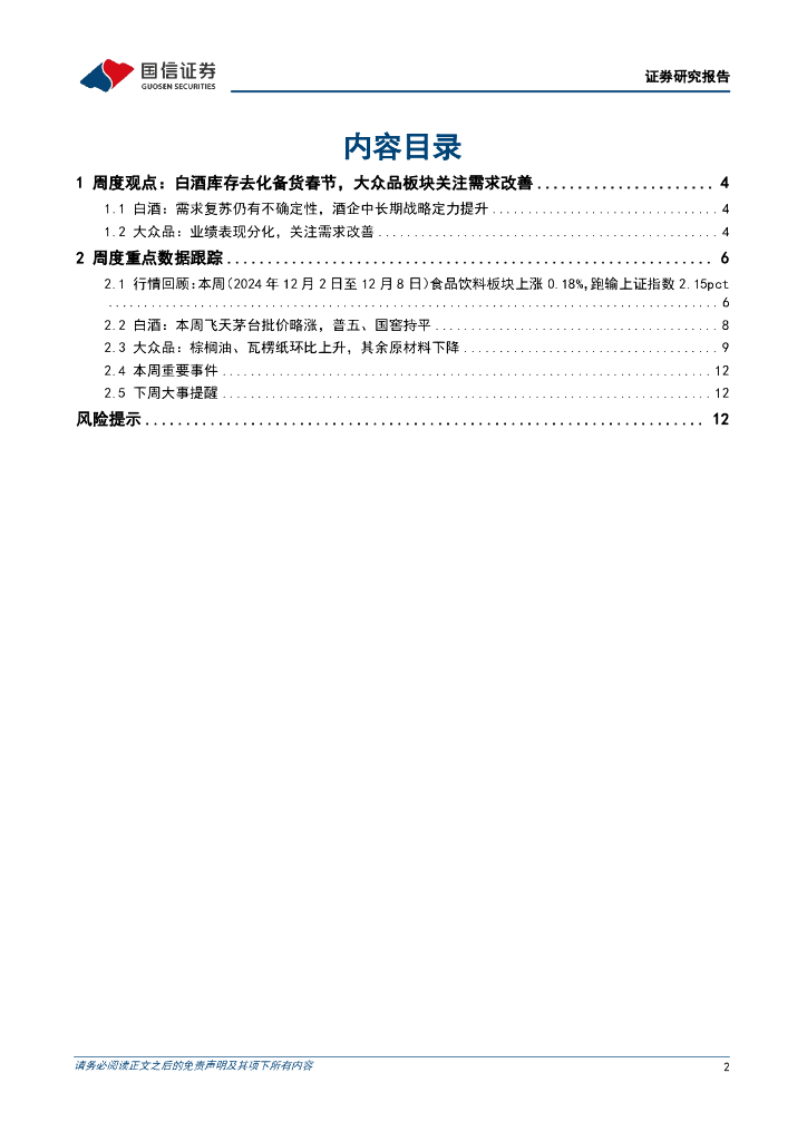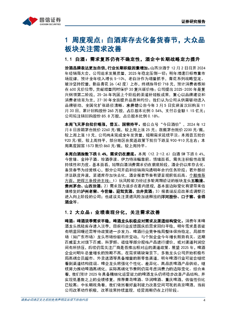 国信证券:食品饮料行业周报(24年第50周):白酒库存去化备货春节,大众品板块关注需求改善.pdf