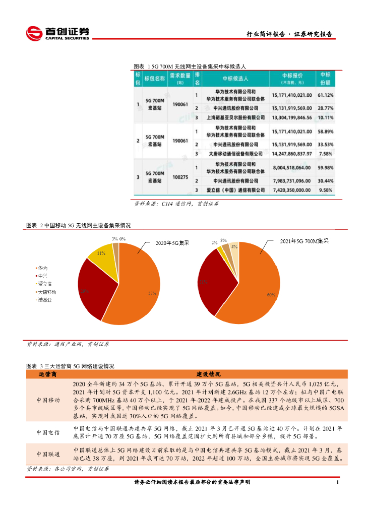 首创证券:通信行业简评报告:移动5G 700M主设备招标落地.pdf