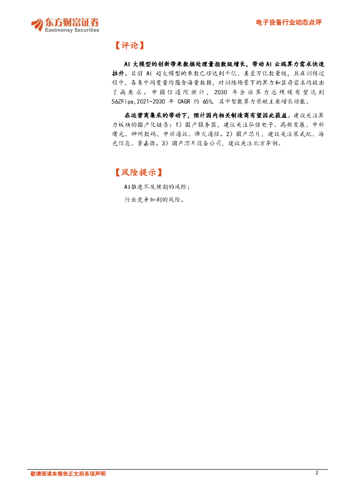 东方财富证券:电子设备行业动态点评:中国电信公布AI算力服务器集采,美更新AI出口规定,建议关注国产算力.pdf
