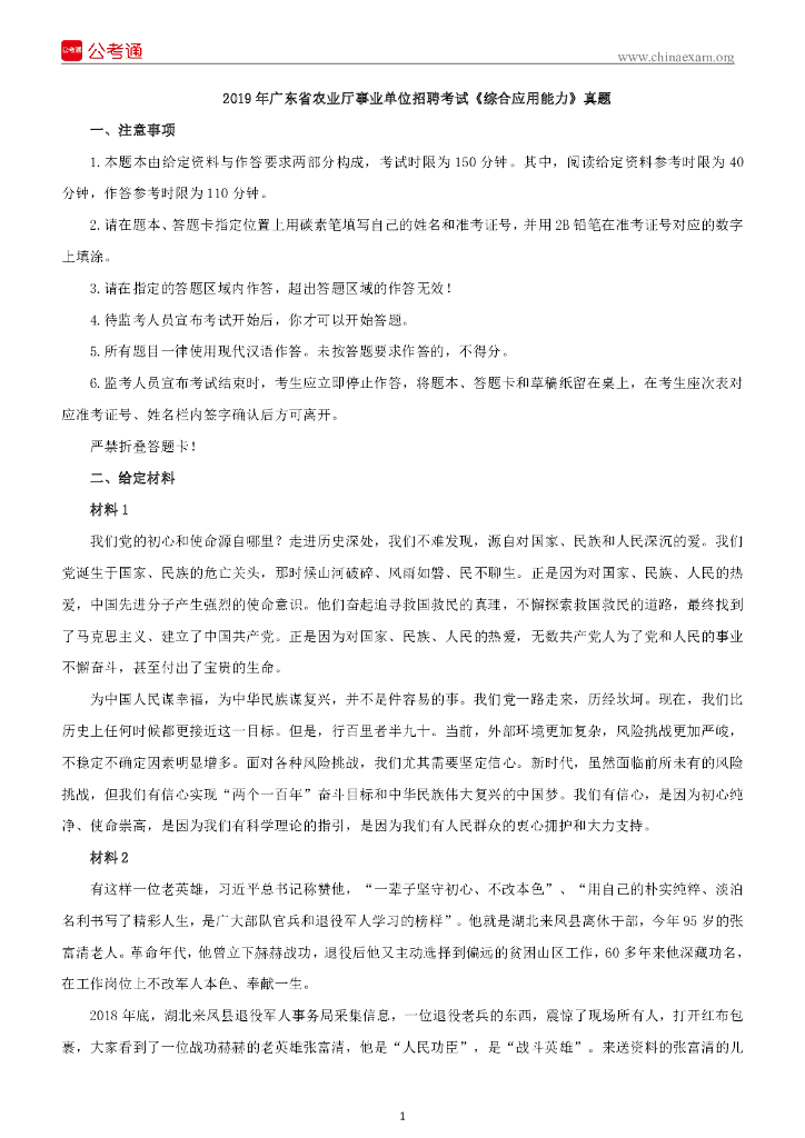 2019年广东省农业厅事业单位招聘考试《综合应用能力》真题.pdf