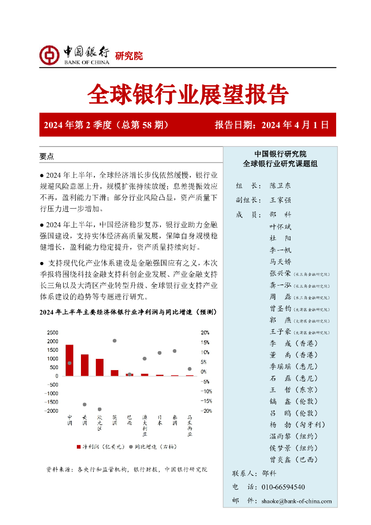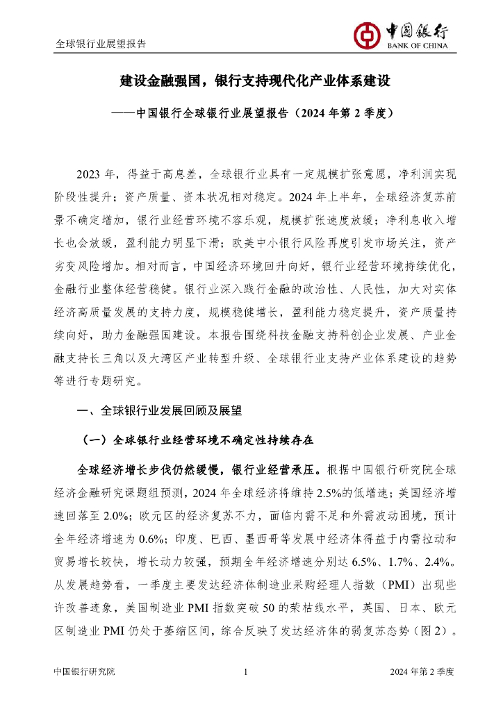 中国银行研究院:中国银行全球银行业展望报告(2024年第2季度):建设金融强国,银行支持现代化产业体系建设.pdf