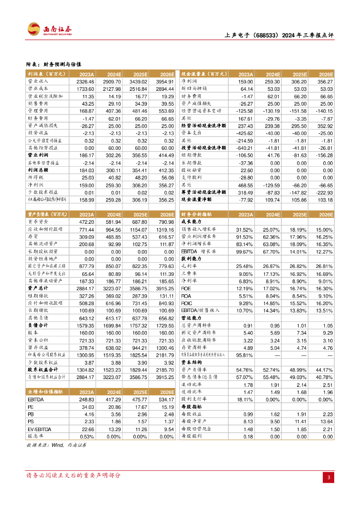 西南证券:上声电子(688533)-2024年三季报点评:Q3营收快速增长,盈利能力大幅提升.pdf