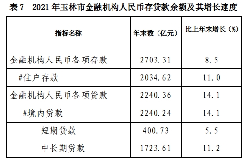 玉林市2021年国民经济和社会发展统计公报