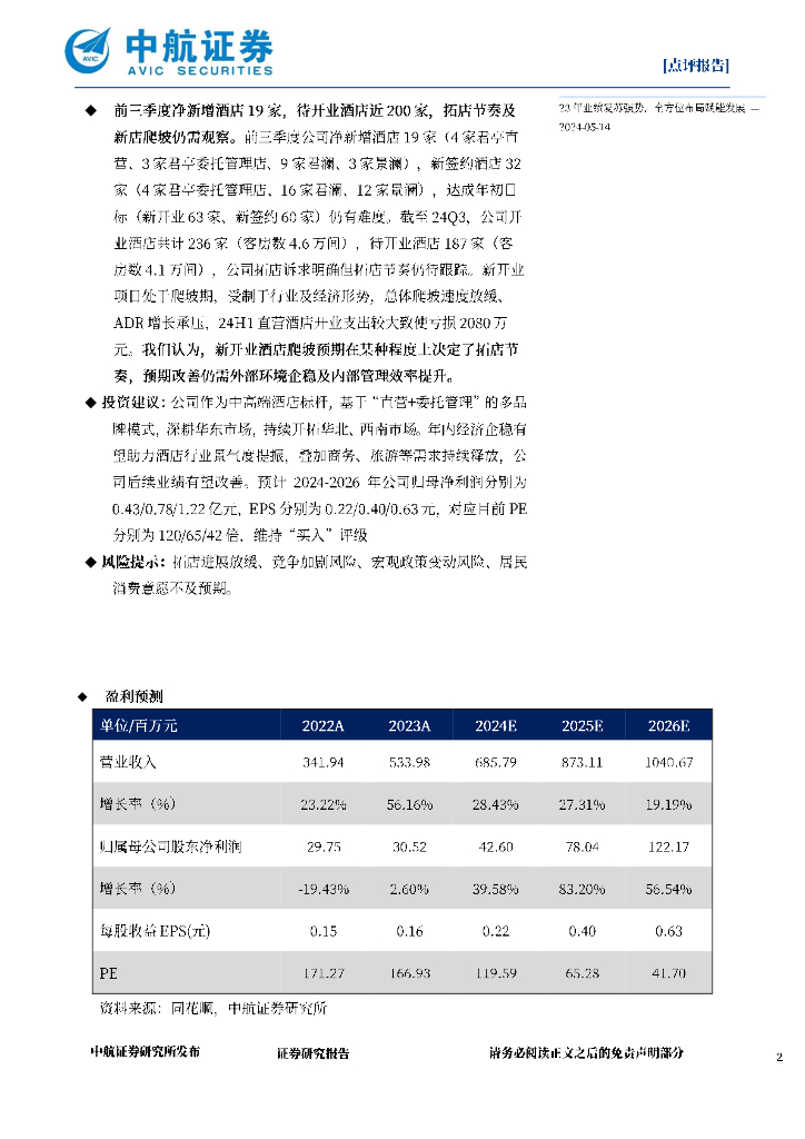 中航证券:君亭酒店(301073)-新店爬坡致使业绩短期承压,关注拓店节奏.pdf