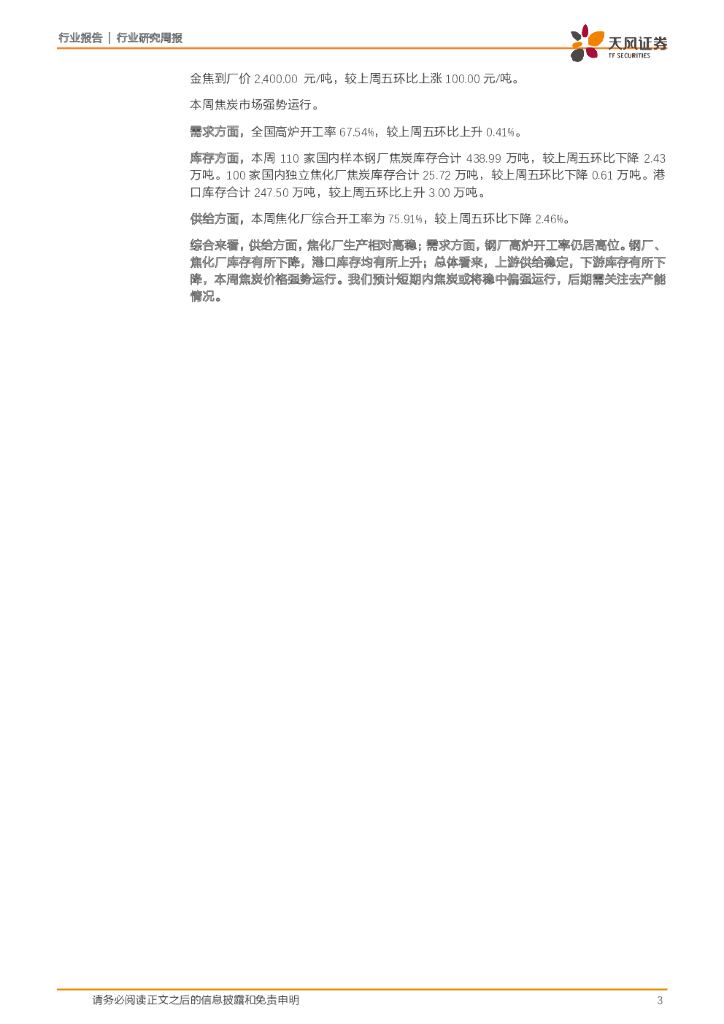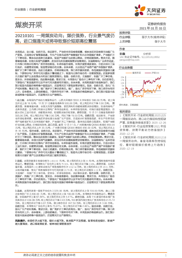 天风证券:一周煤炭动向:煤价强势,行业景气度仍高,进口煤通关或将导致煤价短期高位震荡.pdf