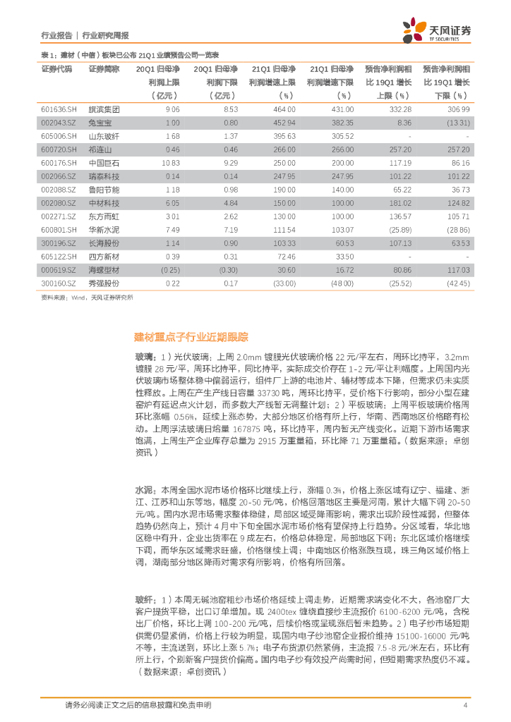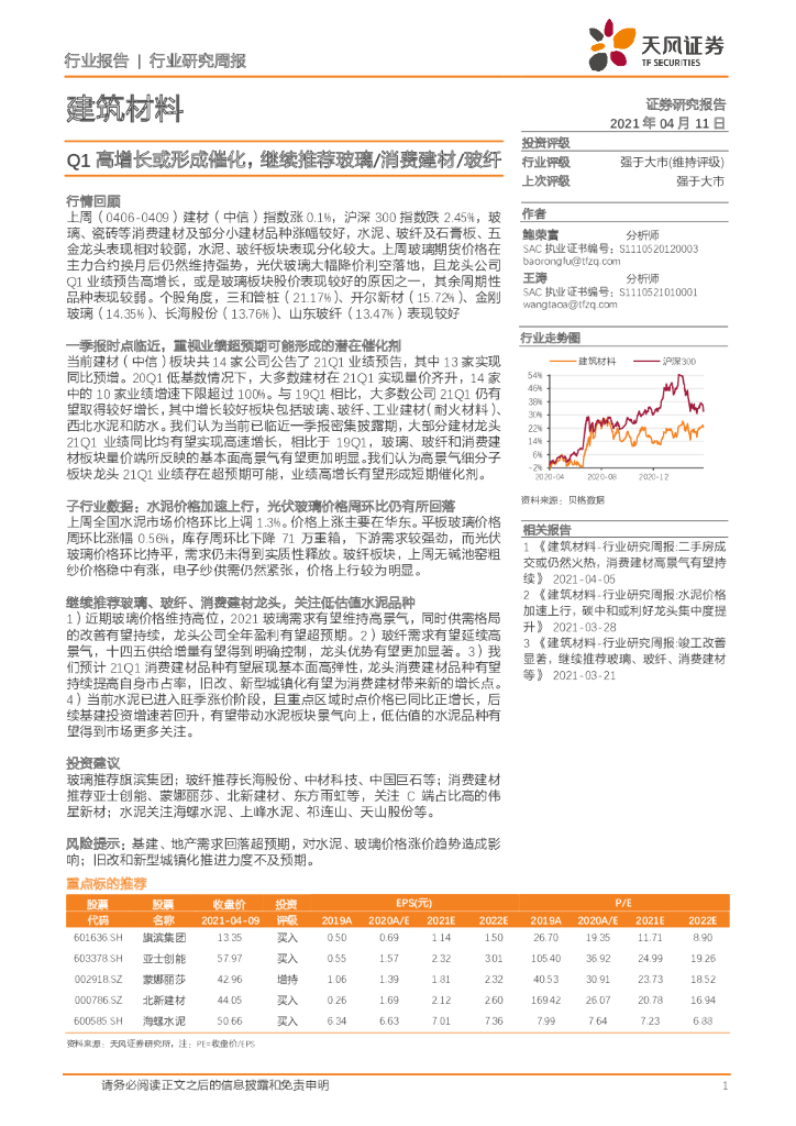 天风证券:建筑材料行业研究周报:Q1高增长或形成催化,继续推荐玻璃/消费建材/玻纤.pdf